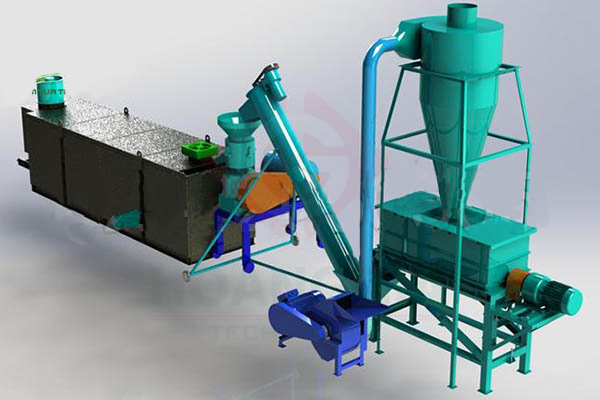 Dây chuyền thiết bị sản xuất cám viên là tổ hợp một chuỗi các loại thiết bị khác nhau được sắp xếp khoa học và hợp lý để tạo thành dây chuyền sản xuất cám viên khép kín năng suất cao. Các thiết bị trong dây chuyền được sắp xếp lần lượt theo quy trình sản xuất viên cám làm thức ăn chăn nuôi: