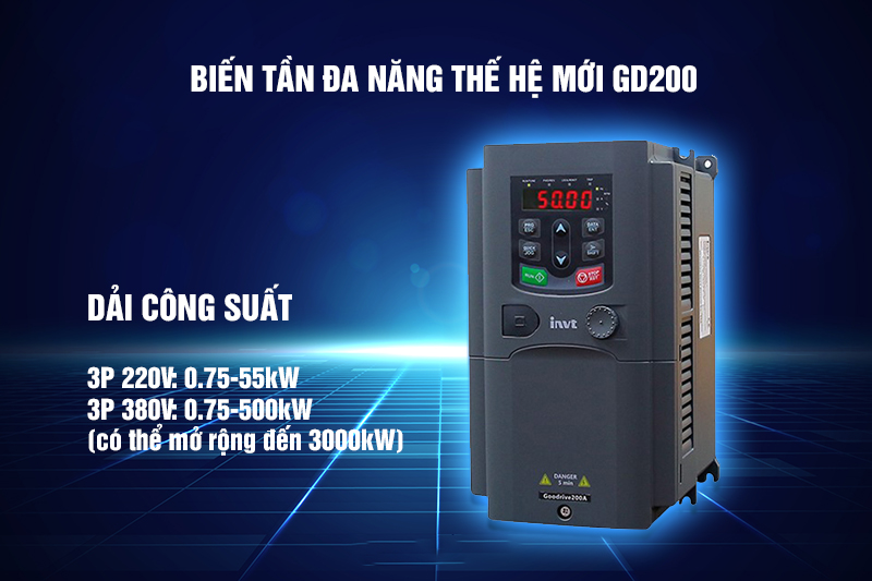 - Biến tần GD200A được nhiệt đới hóa, phù hợp với môi trường nóng ẩm.