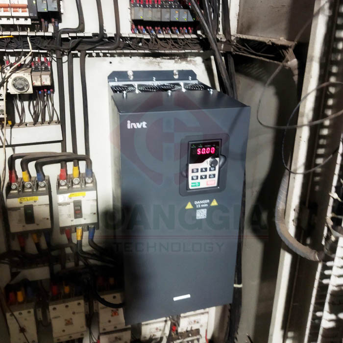 Nhận được yêu cầu của chủ đầu tư, đội ngũ kỹ sư HGA đã tiến hành khảo sát toàn bộ hệ thống bơm nước của trạm. Hiện nay, động cơ bơm nước chính của trạm có công suất 75kW đã được lắp đặt biến tần cũ nhưng bị hỏng. Chủ đầu tư quyết định chuyển sang sử dụng dòng biến tần INVT GD200A công suất 75kW với mã GD200-055G/075P-4.