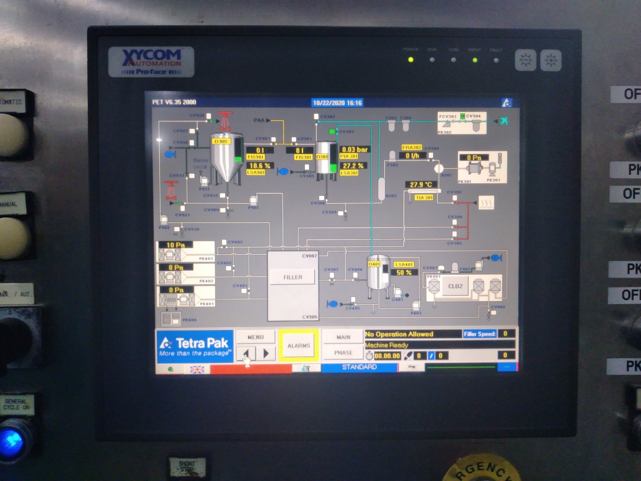 Trong quá trình vận hành hệ thống chiết rót, bộ phận điều khiển hệ thống đưa phôi xảy ra lỗi, biến tần điều khiển kèm theo chương trình của hệ thống này không thể sửa chữa, nếu đặt hàng từ nước ngoài thường mất thời gian từ 4-6 tuần, không đảm bảo tiến độ sản xuất của nhà máy. Vì vậy, với hơn 14 năm kinh nghiệm lắp đặt và sửa chữa biến tần, đội ngũ kỹ sư Hoàng Gia Automation đã tư vấn sử dụng siêu biến tần GD350 kết hợp bộ PLC IVC1L của INVT để thay thế biến tần cũ.
