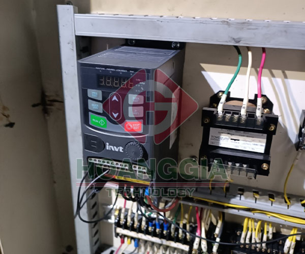 Chọn và lắp đặt biến tần thay thế: Dựa trên thông số kỹ thuật của biến tần Fuji, kỹ thuật viên Hoàng Gia Automation đã lựa chọn biến tần INVT GD20 có cùng thông số kỹ thuật công suất 2.2kW để thay thể biến tần cũ, đảm bảo hiệu quả hoạt động và độ bền của máy vắt dầu linh kiện kim loại.