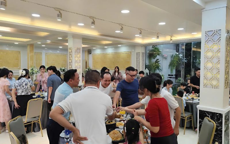 Sau phần trao quà, toàn thể khách mời cùng nhau thưởng thức bữa tiệc sang trọng với thực đơn đa dạng, phong phú. Những hương vị quen mà lạ hòa quyện, những câu chuyện đời thường, tiếng cười rộn rã vang lên khắp các bàn tiệc. Đây không chỉ đơn thuần là một bữa ăn thịnh soạn, mà còn là dịp để từng thành viên và gia đình thấu hiểu, đồng cảm và gần gũi nhau hơn. Không khí ấy khiến mọi người như xóa nhòa mọi khoảng cách, cảm nhận rõ tinh thần đồng đội, sự sẻ chia của ngôi nhà Hoàng Gia.