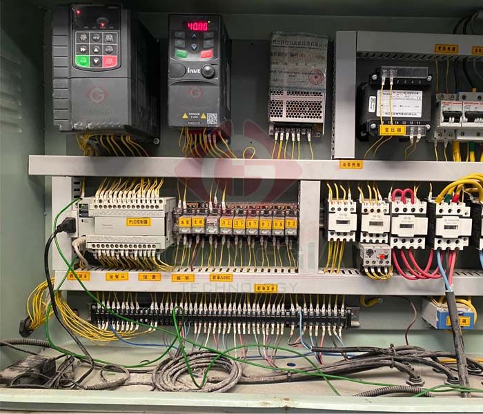 Tủ điện điều khiển của máy đang được lắp đặt 2 biến tần thương hiệu KLCY điều khiển motor dịch chuyển dầm biên hai bên phải và trái cho trục đĩa dao, trong đó 1 biến tần xảy ra sự cố không thể khắc phục khiến cho dây truyền sản xuất phải dừng lại, ảnh hưởng đến tiến độ sản xuất của khách hàng.