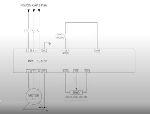 Đấu nối volume tốc độ sử dụng chân AI1, GND, 10V trên biến tần GD270